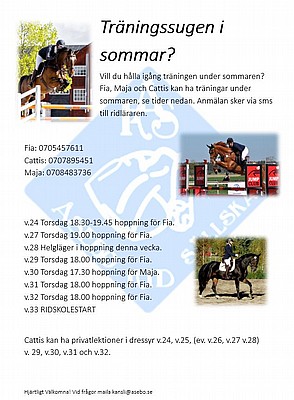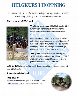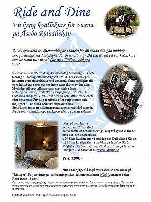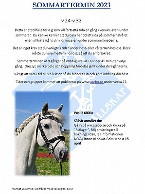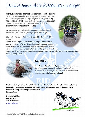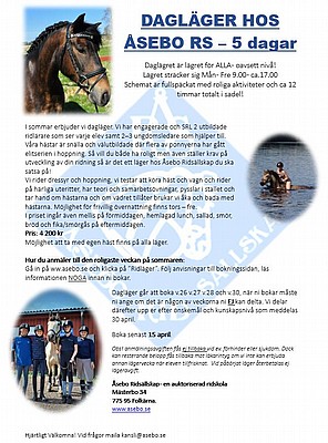 Ni kan läsa om alla aktiviteter här på hemsidan under fliken "Ridläger". All information hittar ni även på vår Facebook sida. Har ni frågor, kontakta kansli@asebo.se