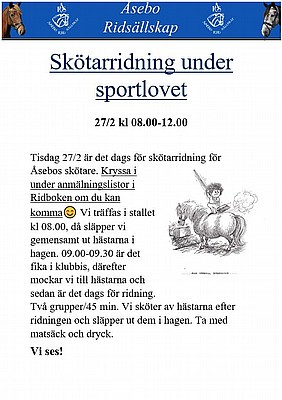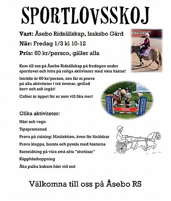Här kommer ett urval av aktiviteterna vi har på sportlovet (v.9). Privatlektioner går att boka under alla veckodagar, skickat ett mejl till kansli@asebo.se