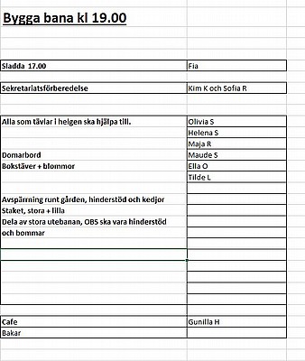 På lördag har vi dressyrtävlingar och här hittar ni funktionärslistorna. Lunch och fika, mackor kommer att finnas under dagen uppe i caféet, fråga cafépersonalen så hjälper de er. Tack för att ni ställer upp för vår fina förening!