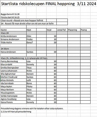 Startlistor ridskolecupen hoppning 19/11 samling 08.30