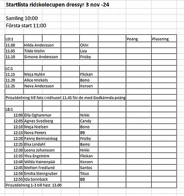 Startlistor 5/11 Ridskolecupen dressyr & teori
