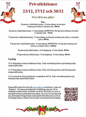 Här kommer några av aktiviteterna under jul, MEN håll utkik för fler aktiviteter kommer i veckan! 🏇🤶